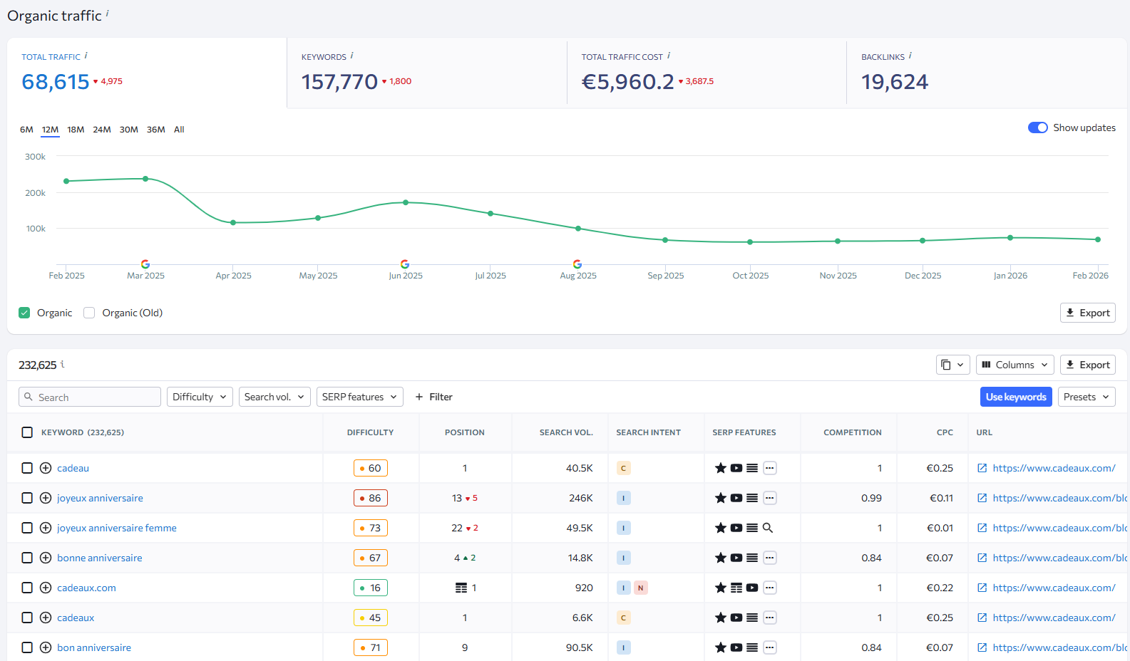 L’approche est un peu moins granulaire sur le mot‑clé individuel, mais plus analytique à l’échelle d’un site ou d’une thématique.
